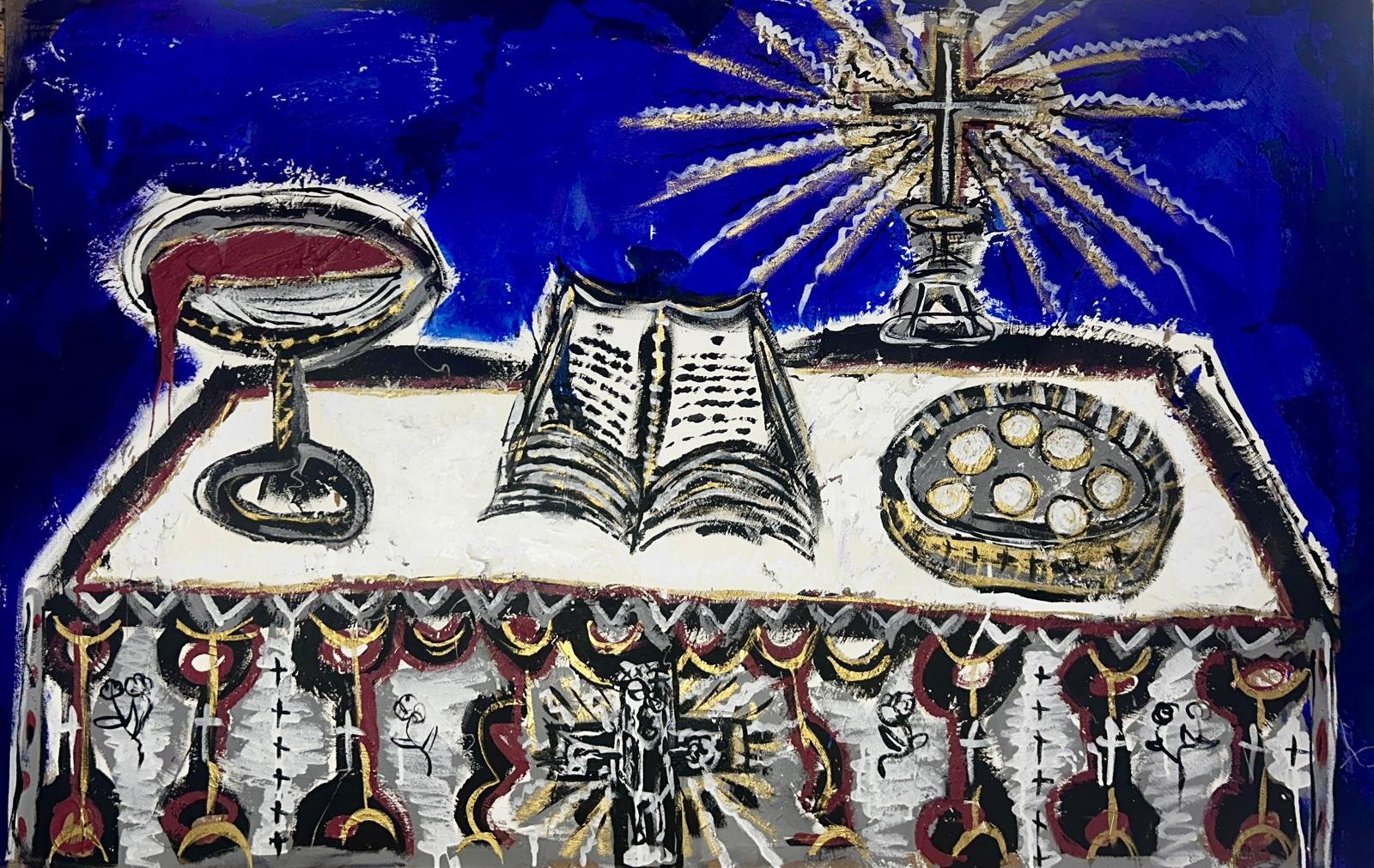 SACRE est une série de peintures religieuses revisitant des passages de la bible. Mêlant différentes influences artistiques, proposant un véritable travail de la matière associé à la spontanéité du trait, Aurélien renouvelle et modernise le genre.